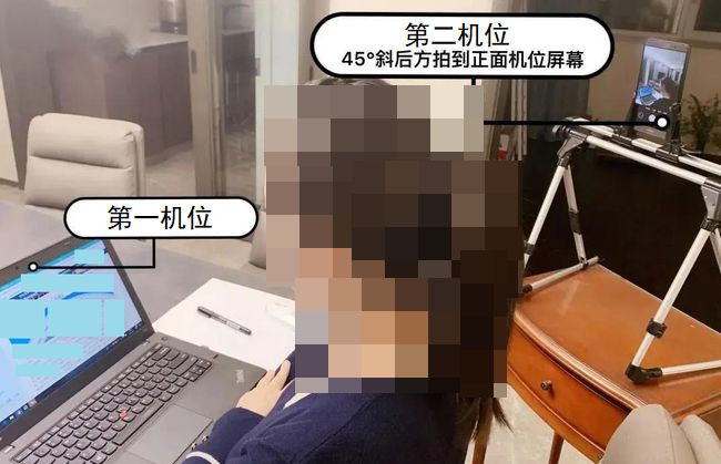 (1)远程复试考核采用双机位。考生须准备一台笔记本电脑(带摄像头、麦克风)或一台台式电脑(外置摄像头、麦克风及音响),保证电量充足,存储空间充足,和一部智能手机(第二机位使用);或两部智能手机(一部第一机位,一部第二机位)。“第一机位”用于采集考生音、视频源(考生正前方),建议使用笔记本电脑或者台式机,不推荐使用手机。“第二机位”用于采集考生所处的环境(考生远端,侧方或者后方),要开启静音模式,要求能够监控考生的周边情况以及“第一机位”显示器的音、视频源,建议使用手机。第一机位和第二机位视野交叉形成360度监控视野。若使用手机设备,要关闭通话、录屏、外放音乐、闹钟等可能影响考试的应用程序。