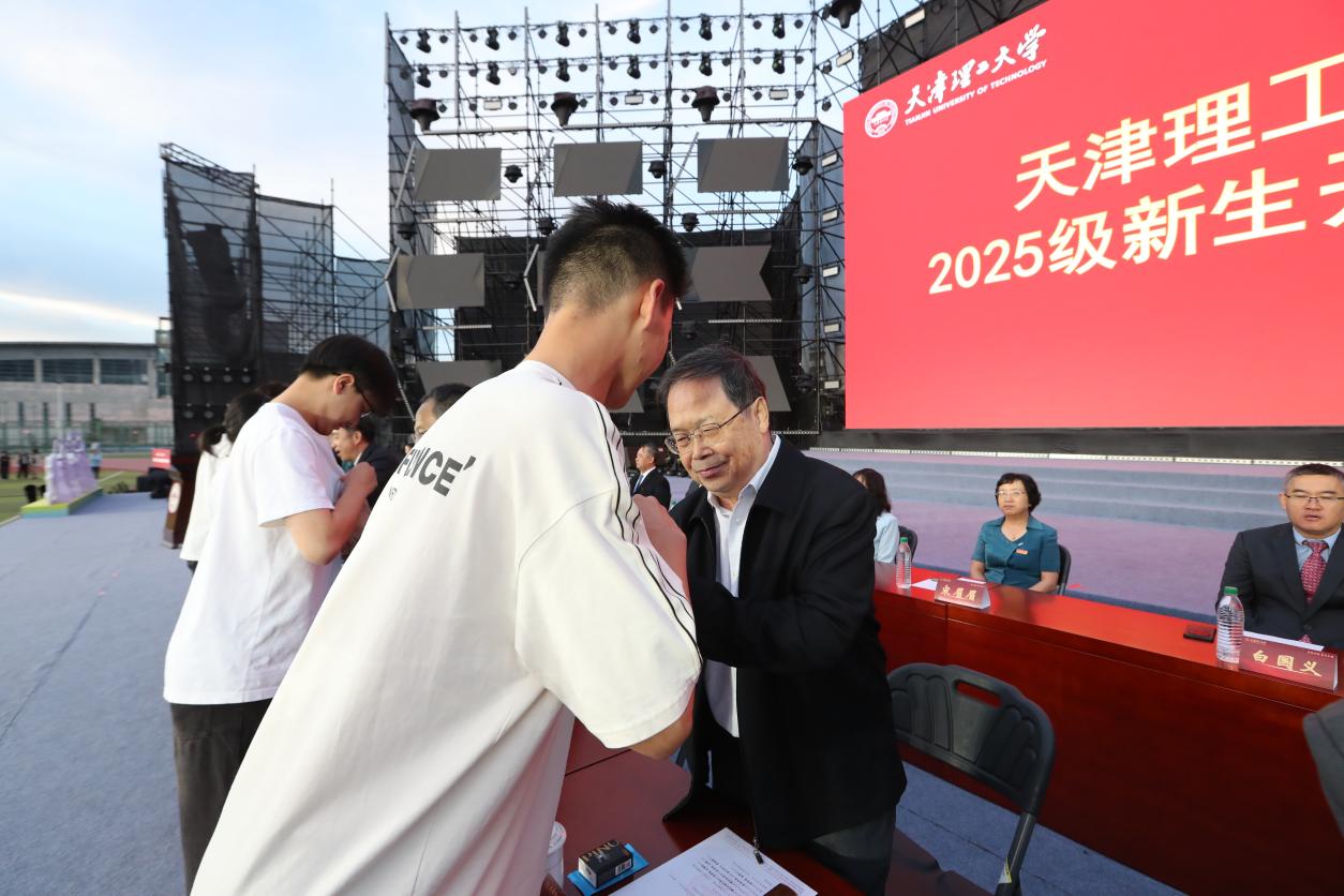 2025年9月,在学校开学典礼现场,吴以成院士为2025级新生代表佩戴校徽。这一刻,距离他1964年踏入大学校门,已跨越了半个多世纪。
